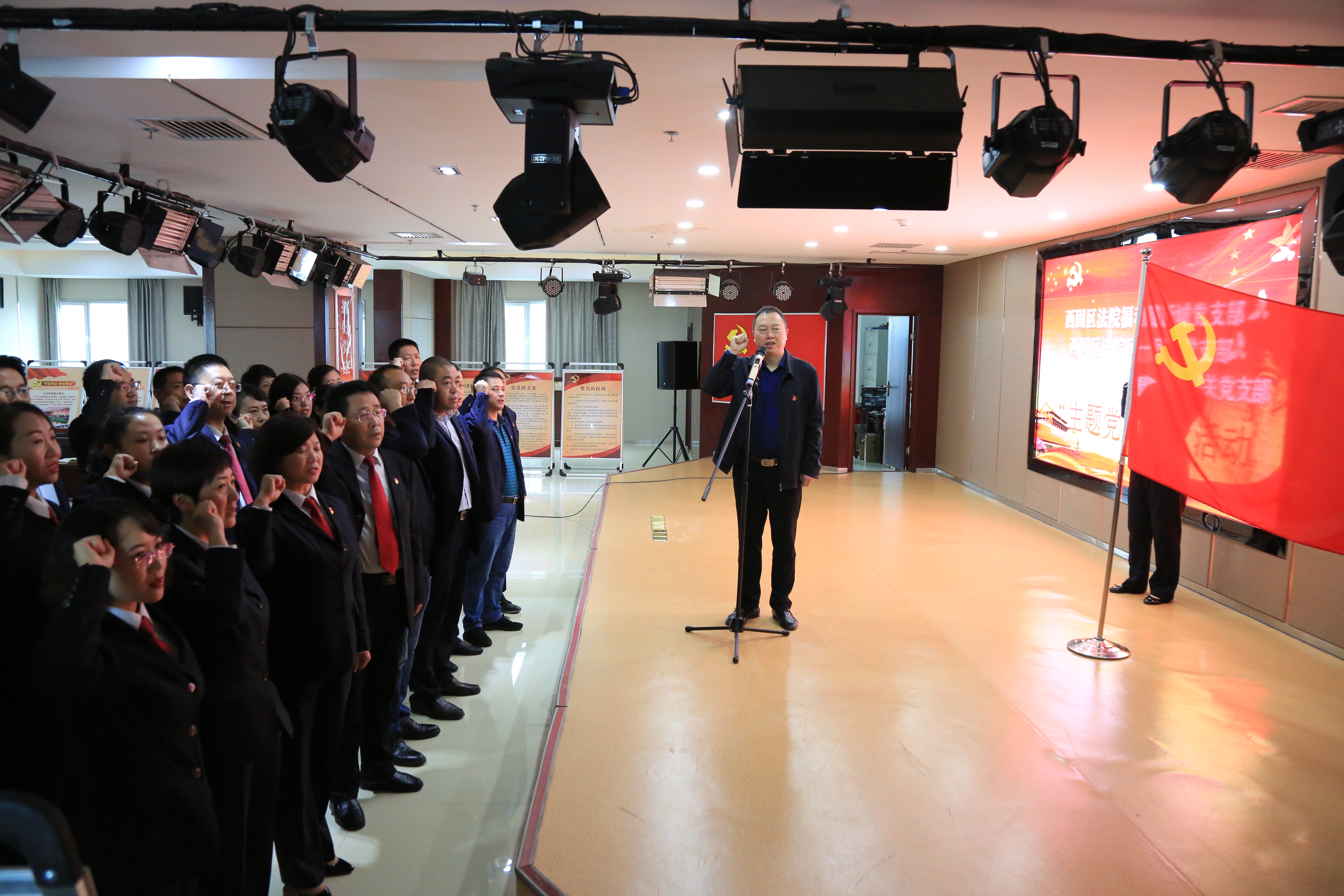 正值第二批“不忘初心、牢記使命”主題教育開展之際,又恰逢國慶假期第一周,舉國上下還沉浸在慶祝祖國70華誕的喜悅氛圍中。10月9日,在西固法院分管院長帶領(lǐng)下,民一民二黨支部和福利路新城法庭黨支部深入我司開展“主題黨日+”和支部聯(lián)建活動。
