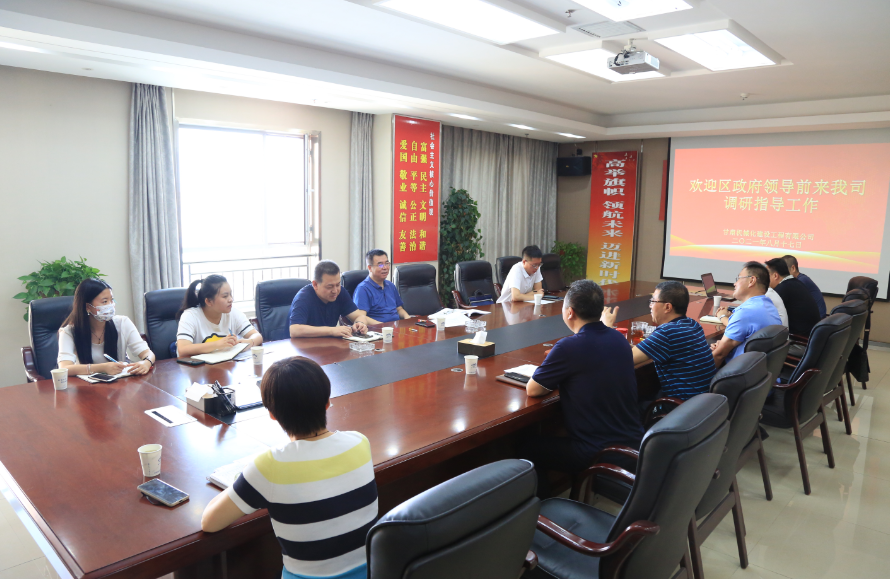 8月17日上午,西固區(qū)政府黨組成員、副區(qū)長(zhǎng)陳良一行蒞臨我司調(diào)研指導(dǎo)工作,公司領(lǐng)導(dǎo)及相關(guān)人員陪同并參加座談會(huì)。